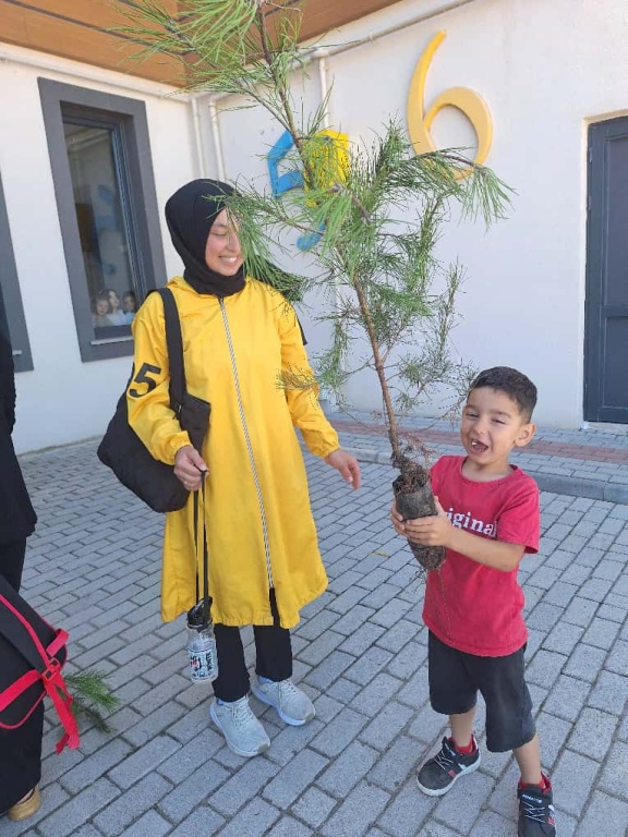 Öğrencilerimiz, fidanlarını aileleriyle birlikte; dileyenler evlerinin bahçelerine, dileyenler ise uygun gördükleri başka alanlara diktiler.